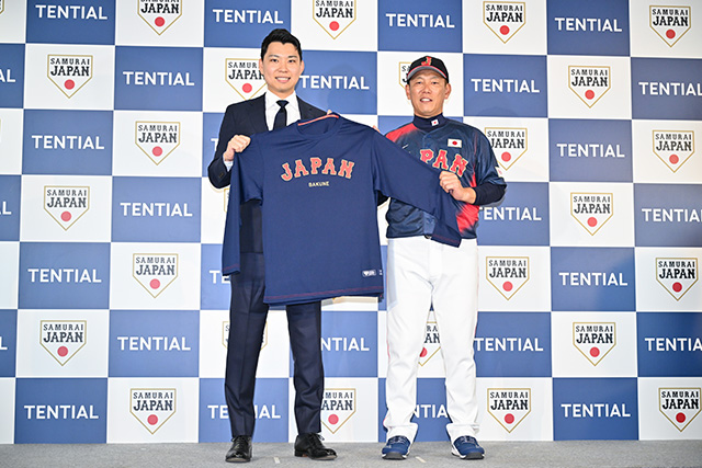 会見の最後には侍ジャパンとのオリジナルコラボリカバリーウェアの発売が発表。紺とともに白のウェアの発売も決まり、井端監督は「白のウェアも出して欲しいと思っていたので嬉しいです」と喜んだ。
