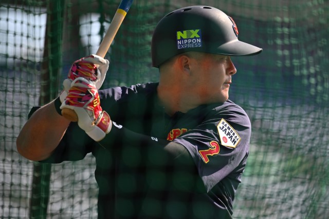 この日も選手たちは「2026 WORLD BASEBALL CLASSIC™」(以下、WBC)で導入されるピッチコム(サインの伝達機器)を使用して練習。ブルペンだけでなく、投内連係でも使用され、二遊間の選手も装着し牽制のサインなどを確認した。