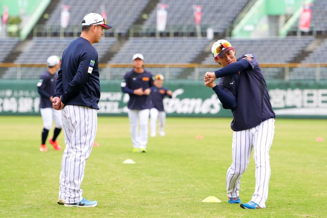 前日に広島との14対11という乱打戦を制した侍ジャパン。井端弘和監督が「久々の試合だった選手もいましたし、長い試合だったので午前中だけ全体練習で、午後はフリーにしました」と話すように短い全体練習の後は、各自に調整が任された。それだけに井端監督は選手たちのコンディションに注意を払ったが「みんな、体の状態は大丈夫そう。良い状態で韓国戦に行けそうです」と話した。