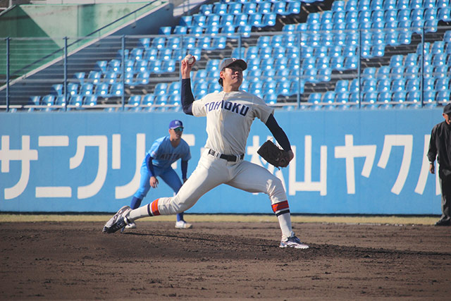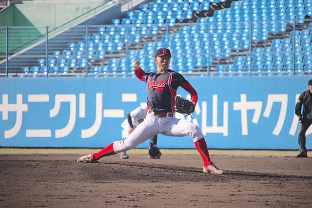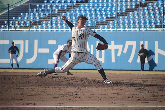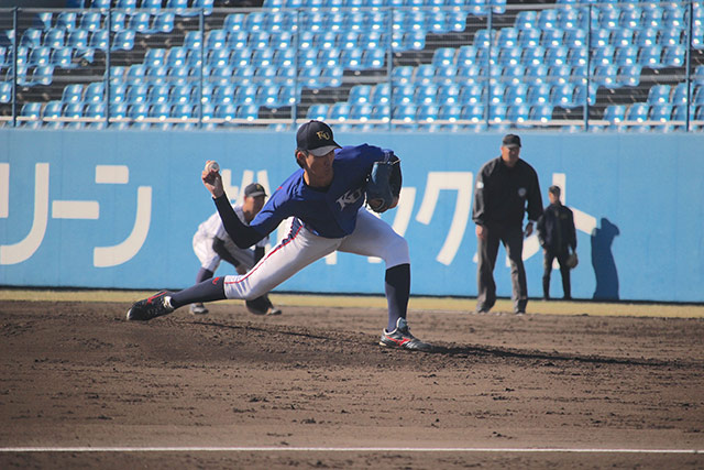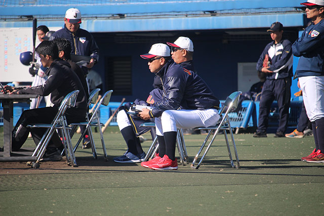 午後の部は、投手陣の好投が目立った。特に鈴木英之監督も名を挙げたのが、今夏の日米大学野球でも活躍した鈴木泰成(青山学院大)、今秋の関西学生リーグで5勝0敗と好投を続けベストナインに輝いた宮原廉(近畿大)、今秋の公式戦で35回連続無失点を記録した野村亮輔(佛教大)の3右腕。いずれも150キロを超えるストレートに加え、国際大会でより有効になる縦の変化球を駆使して、打者たちをねじ伏せた。