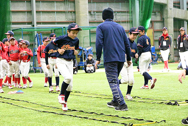 バッティングを担当した金子コーチは「バットを振ったあとに体が流れないこと」、「センター返しをすること」の2つをテーマに掲げ、ティースタンドを使った練習では身振り手振りで熱心な指導で上達へ導いた。キャッチボールを担当した梵コーチも、自らボールを握って手本をみせ、一人ひとりを親身になって教えた。