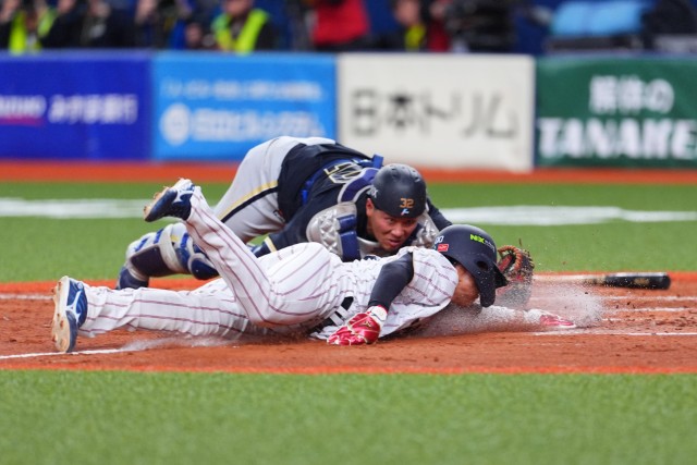 打線はその後も代打・牧原大成の安打と吉田の2安打目のみに抑えられていくが、8回には若月健矢(オリックス)が山﨑聡一郎から右中間を破る二塁打を放って、四球で出ていた牧秀悟(DeNA)が生還し2点目。9回には代打・周東佑京(ソフトバンク)の安打とサポートメンバーの仲田慶介(西武)の連打からチャンスを作り、牧がレフトへ二塁打。これで周東が生還し、同点の生還を狙った仲田はアウトとなったが、1点差まで詰め寄ることはできた。