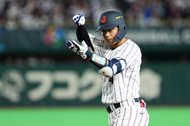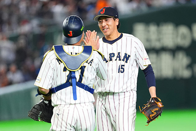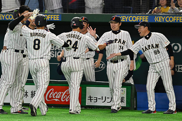 8回は、韓国戦で三者連続三振を奪った種市篤暉(ロッテ)がこの日も150キロ台のストレートと140キロ台のスプリットで圧倒。三者凡退に抑えると、その裏に周東佑京(ソフトバンク)の盗塁などでプレッシャーをかけ、代打の佐藤輝明(阪神)がレフト線への二塁打を放って追加点。さらに鈴木誠也(カブス)が押し出し四球を選んでダメ押し。 最終回は大勢(巨人)がアレックス・ホールとリクソン・ウィングローブにソロ本塁打を浴びたが、後続を抑えて試合を締めた。