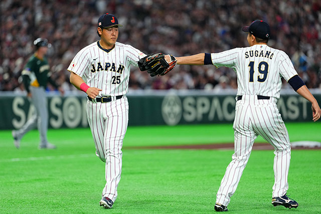そんな中始まった試合は侍ジャパンの先発・菅野智之(ロッキーズ)が1回、3回、4回と走者を出しながらも、要所を締めて4回4安打無失点に抑えた。巨人の選手・コーチ時代に菅野とともに戦った井端弘和監督は「初回からあんなに声を出して投げる菅野投手は初めて見たので、気持ちが入っていてすごく頼もしく見えました」と称えた。