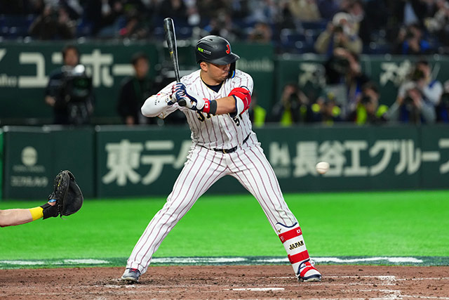 打線はオーストラリアの先発コナー・マクドナルドの前に3回まで得点を奪えずにいたが、4回裏に代わったワーウィック・ソーポルドから岡本和真(ブルージェイズ)の四球と牧秀悟(DeNA)の安打、若月健矢(オリックス)の四球で2死ながら満塁のチャンスを作ると、打席には大谷翔平(ドジャース)。ここでオーストラリアは左腕のブレイク・タウンゼントを投入した。 大谷は2回のチャンスでは凡退しており、絶好の雪辱の機会に思えた。だが、オーストラリアの捕手ロビー・パーキンスによるピックオフプレーの二塁牽制で牧が刺され、先制の機会を逸した。