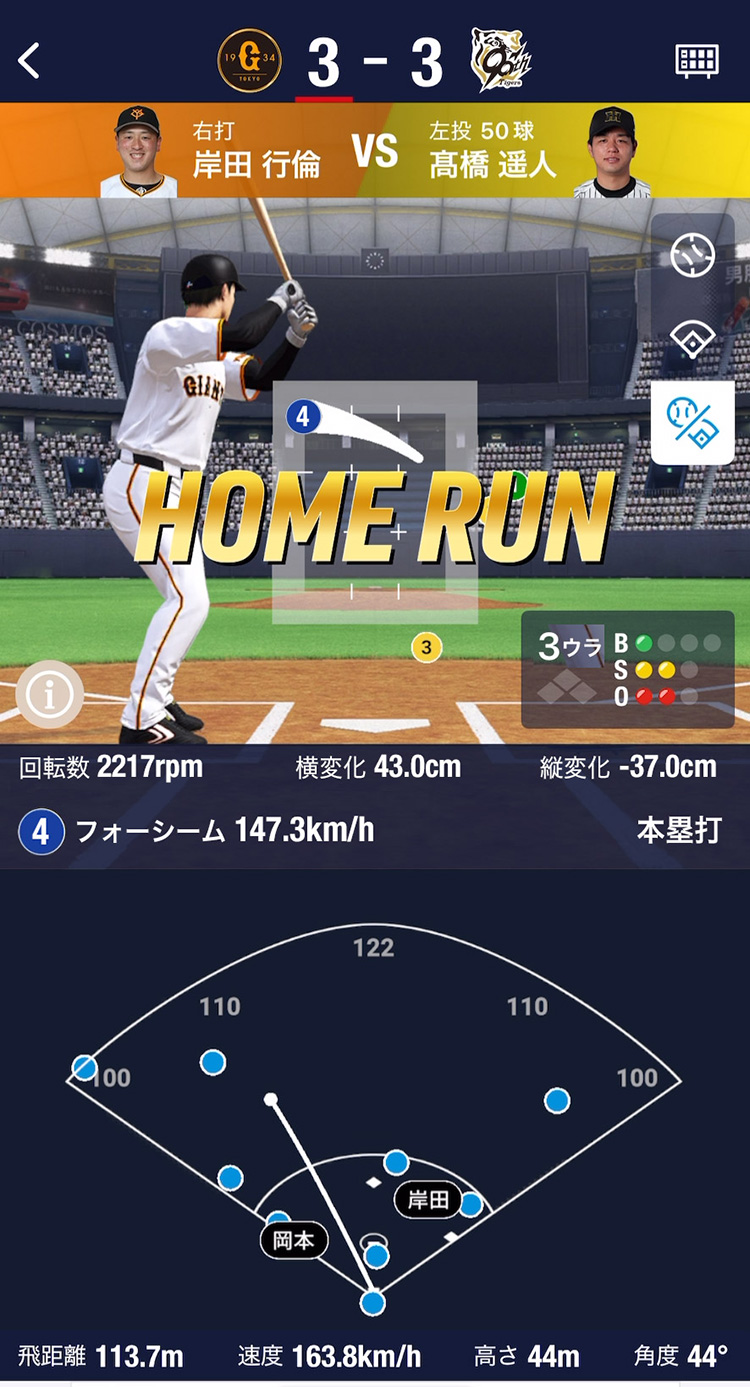 今まで見えなかったプレーが見える!打球の軌道、守備の動き、投球の回転数まで、従来の速報では得られなかった詳細データをリアルタイムで表示。